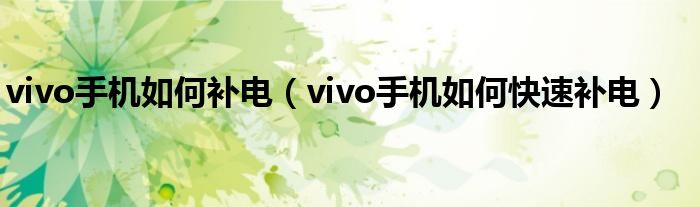大家好,小晋来为大家解答以下问题,关于vivo手机如何补电,vivo手机如何快速补电很多人还不知道,今天让我们一起来看看吧!