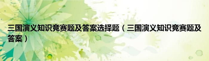 关于三国演义知识竞赛题及答案选择题,三国演义知识竞赛题及答案这个很多人还不知道,今天菲菲来为大家解答以上的问题,现在让我们一起来看看吧!