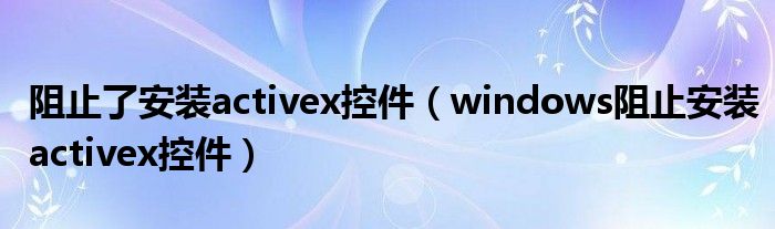 关于阻止了安装activex控件,windows阻止安装activex控件这个很多人还不知道,今天菲菲来为大家解答以上的问题,现在让我们一起来看看吧!