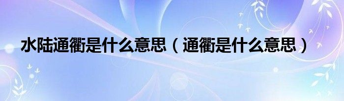 关于水陆通衢是什么意思,通衢是什么意思这个很多人还不知道,今天菲菲来为大家解答以上的问题,现在让我们一起来看看吧!