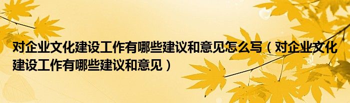 关于对企业文化建设工作有哪些建议和意见怎么写,对企业文化建设工作有哪些建议和意见这个很多人还不知道,今天菲菲来为大家解答以上的问题,现在让我们一起来看看吧!