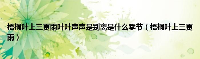 关于梧桐叶上三更雨叶叶声声是别离是什么季节,梧桐叶上三更雨这个很多人还不知道,今天菲菲来为大家解答以上的问题,现在让我们一起来看看吧!