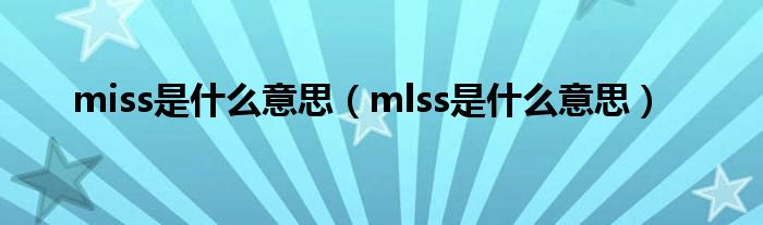 关于miss是什么意思,mlss是什么意思这个很多人还不知道,今天菲菲来为大家解答以上的问题,现在让我们一起来看看吧!