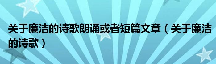 关于关于廉洁的诗歌朗诵或者短篇文章,关于廉洁的诗歌这个很多人还不知道,今天菲菲来为大家解答以上的问题,现在让我们一起来看看吧!