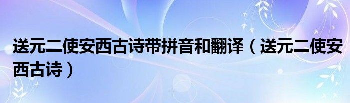 关于送元二使安西古诗带拼音和翻译,送元二使安西古诗这个很多人还不知道,今天菲菲来为大家解答以上的问题,现在让我们一起来看看吧!