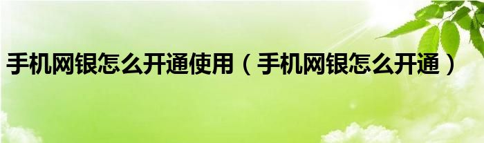 大家好,小晋来为大家解答以下问题,关于手机网银怎么开通使用,手机网银怎么开通很多人还不知道,今天让我们一起来看看吧!