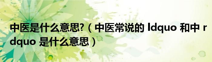 关于中医是什么意思?,中医常说的 ldquo 和中 rdquo 是什么意思这个很多人还不知道,今天菲菲来为大家解答以上的问题,现在让我们一起来看看吧!
