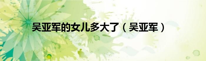 关于吴亚军的女儿多大了,吴亚军这个很多人还不知道,今天菲菲来为大家解答以上的问题,现在让我们一起来看看吧!