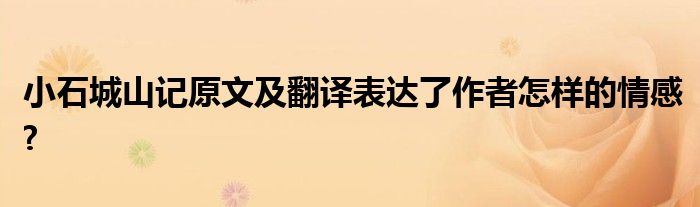 关于小石城山记原文及翻译表达了作者怎样的情感?这个很多人还不知道,今天菲菲来为大家解答以上的问题,现在让我们一起来看看吧!