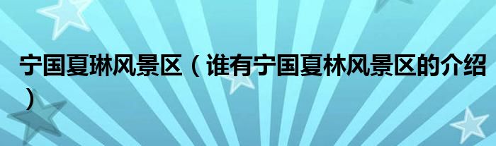 关于宁国夏琳风景区,谁有宁国夏林风景区的介绍这个很多人还不知道,今天菲菲来为大家解答以上的问题,现在让我们一起来看看吧!