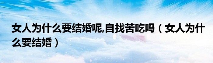 关于女人为什么要结婚呢,自找苦吃吗,女人为什么要结婚这个很多人还不知道,今天菲菲来为大家解答以上的问题,现在让我们一起来看看吧!