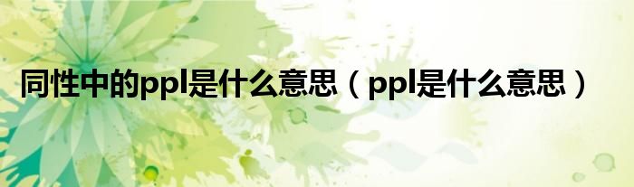 关于同性中的ppl是什么意思,ppl是什么意思这个很多人还不知道,今天菲菲来为大家解答以上的问题,现在让我们一起来看看吧!