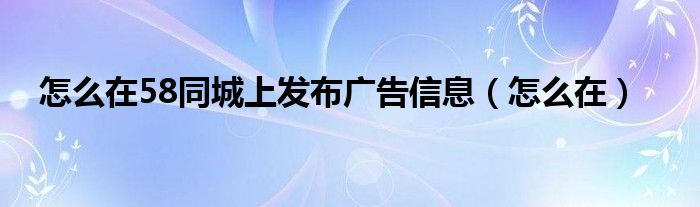 关于怎么在58同城上发布广告信息,怎么在这个很多人还不知道,今天菲菲来为大家解答以上的问题,现在让我们一起来看看吧!