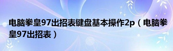 关于电脑拳皇97出招表键盘基本操作2p,电脑拳皇97出招表这个很多人还不知道,今天菲菲来为大家解答以上的问题,现在让我们一起来看看吧!