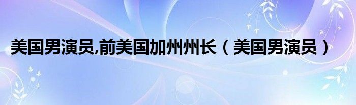 关于美国男演员,前美国加州州长,美国男演员这个很多人还不知道,今天菲菲来为大家解答以上的问题,现在让我们一起来看看吧!