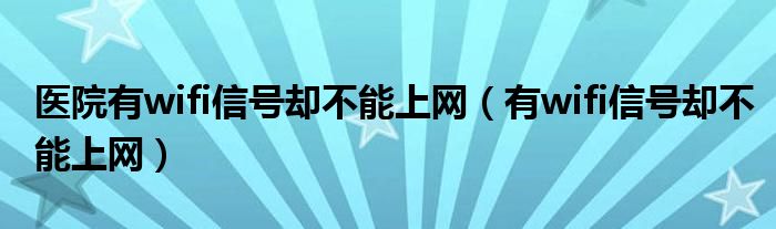 大家好,小晋来为大家解答以下问题,关于医院有wifi信号却不能上网,有wifi信号却不能上网很多人还不知道,今天让我们一起来看看吧!
