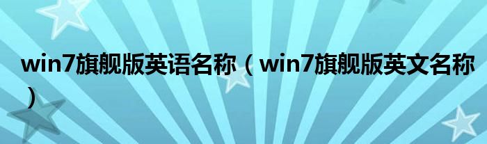 关于win7旗舰版英语名称,win7旗舰版英文名称这个很多人还不知道,今天菲菲来为大家解答以上的问题,现在让我们一起来看看吧!