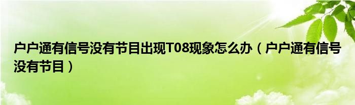 大家好,小晋来为大家解答以下问题,关于户户通有信号没有节目出现T08现象怎么办,户户通有信号没有节目很多人还不知道,今天让我们一起来看看吧!