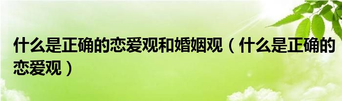 关于什么是正确的恋爱观和婚姻观,什么是正确的恋爱观这个很多人还不知道,今天菲菲来为大家解答以上的问题,现在让我们一起来看看吧!