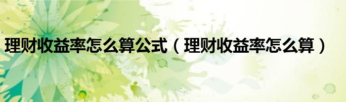 关于理财收益率怎么算公式,理财收益率怎么算这个很多人还不知道,今天菲菲来为大家解答以上的问题,现在让我们一起来看看吧!