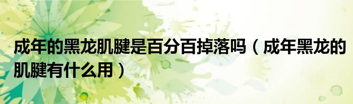 关于成年的黑龙肌腱是百分百掉落吗,成年黑龙的肌腱有什么用这个很多人还不知道,今天菲菲来为大家解答以上的问题,现在让我们一起来看看吧!