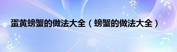 关于蛋黄螃蟹的做法大全,螃蟹的做法大全这个很多人还不知道,今天菲菲来为大家解答以上的问题,现在让我们一起来看看吧!