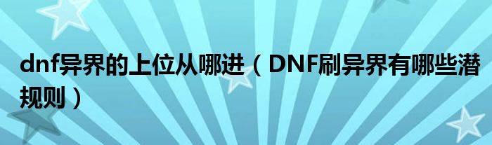 dnf异界的上位从哪进(DNF刷异界有哪些潜规则)