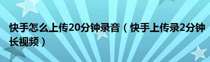 大家好,小晋来为大家解答以下问题,关于快手怎么上传20分钟录音,快手上传录2分钟长视频很多人还不知道,今天让我们一起来看看吧!
