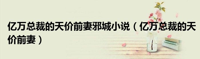 大家好,小晋来为大家解答以下问题,关于亿万总裁的天价前妻邪城小说,亿万总裁的天价前妻很多人还不知道,今天让我们一起来看看吧!