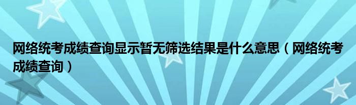 关于网络统考成绩查询显示暂无筛选结果是什么意思,网络统考成绩查询这个很多人还不知道,今天菲菲来为大家解答以上的问题,现在让我们一起来看看吧!