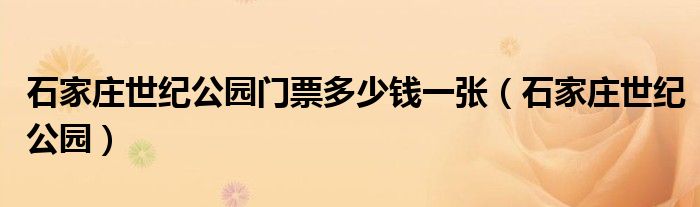 关于石家庄世纪公园门票多少钱一张,石家庄世纪公园这个很多人还不知道,今天菲菲来为大家解答以上的问题,现在让我们一起来看看吧!