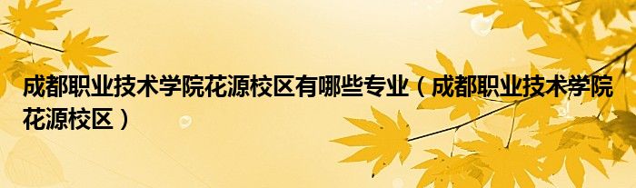 关于成都职业技术学院花源校区有哪些专业,成都职业技术学院花源校区这个很多人还不知道,今天菲菲来为大家解答以上的问题,现在让我们一起来看看吧!