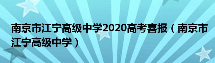 关于南京市江宁高级中学2020高考喜报,南京市江宁高级中学这个很多人还不知道,今天菲菲来为大家解答以上的问题,现在让我们一起来看看吧!