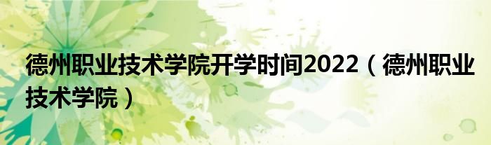 关于德州职业技术学院开学时间2022,德州职业技术学院这个很多人还不知道,今天菲菲来为大家解答以上的问题,现在让我们一起来看看吧!