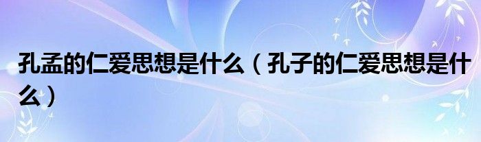 关于孔孟的仁爱思想是什么,孔子的仁爱思想是什么这个很多人还不知道,今天菲菲来为大家解答以上的问题,现在让我们一起来看看吧!